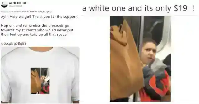 The shirt is a simple white T with a picture of Joe’s hilarious reaction to being sat on. It’s clear that the stranger and Joe will go down in subway folklore. Though many find the story comical, some people are not amused . . .