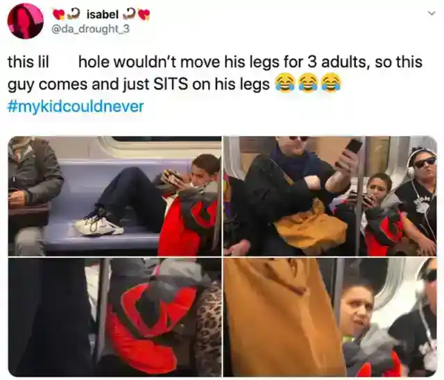 Next time the boy hops on the subway and refuses to move his legs, he should take notes from this guy!