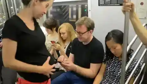 She too was distracted with her phone and focused on YouTube rather than the rest of the world. I guess being insensitive runs in the family. As the mom and son were lost in their tech, the other passengers were forced to stand.
