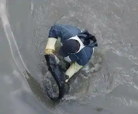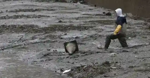 作業員たちは水を抜き続け、水位がわずか50センチ(約20インチ)になるまで排水した。