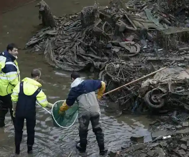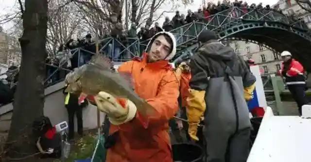 当初、作業員たちが水位を約50センチまで下げたとき、より多くの物体を回収しようと水の中を慎重に歩いたが、生きた「もの」にも出くわすことになった。作業員たちは約5トンものマス、コイ、ブリームを安全に捕獲し、より良い生息地へ移送した。