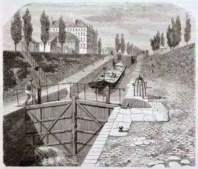サン・マルタン運河は全体で約3マイルにわたりパリを貫いている。当時、この水路は建築資材や食料をパリ市民へ運ぶ役割も果たしていた。