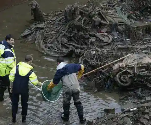 何十万本ものボトルや缶が、水が排出されるにつれて回収された。